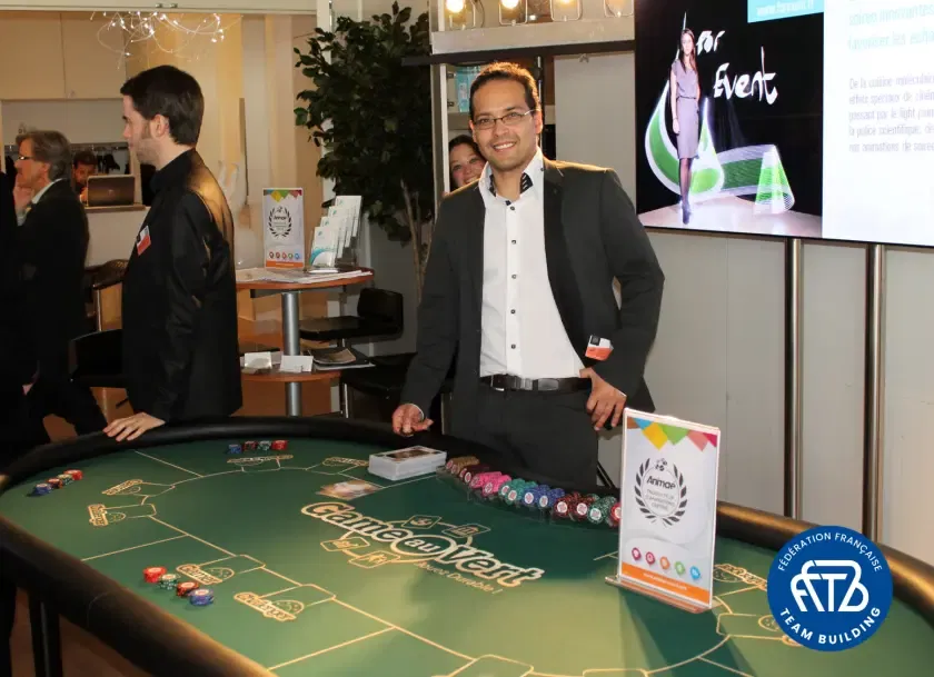 Idéale pour tous vos événements d'entreprise, cette animation ludique sur le développement durable est inspirée des règles du Poker. Stratégie et bluff sont de mise !