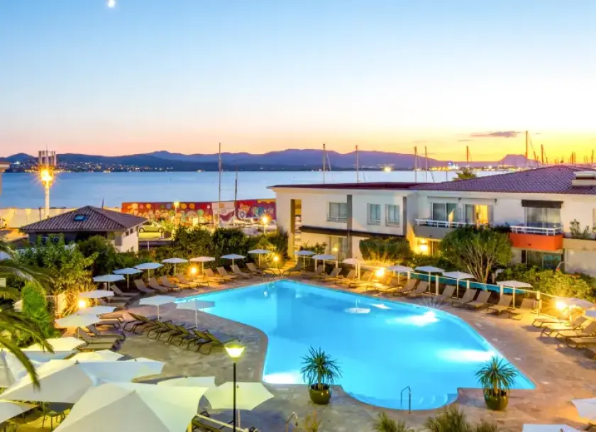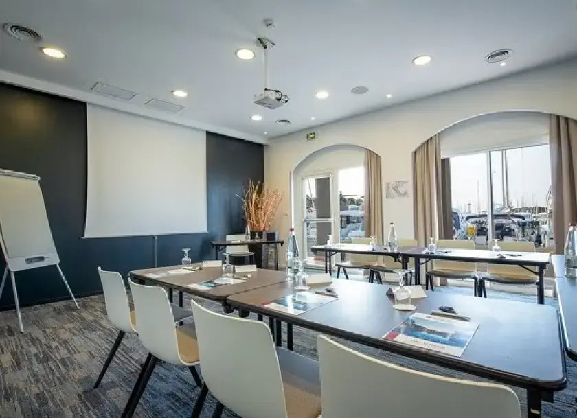 Hôtel entièrement rénové, situé sur le port de plaisance. Restaurant traditionnel sur le port, restauration estivale côté piscine aux beaux jours.Piscine, sauna, centre de bien-être pour modelages et soins du corps, sale de sports.Grand parking à l'arrière de l'hôtel (payant en haute saison).Wifi gratuit dans tout l'hôtel. Ouvert à l'année, 24h/24h. Pour les séminaires et congrès :6 salons à la lumière du jour entièrement modulables, de 20 à 400 m².Palais des congress à 50 metres avec auditorium 350 place, espace exposition de 640 m² et agora extérieure. Pour les groupes :Facilité de stationnement pour les autocars avec point d'eau et électricité.