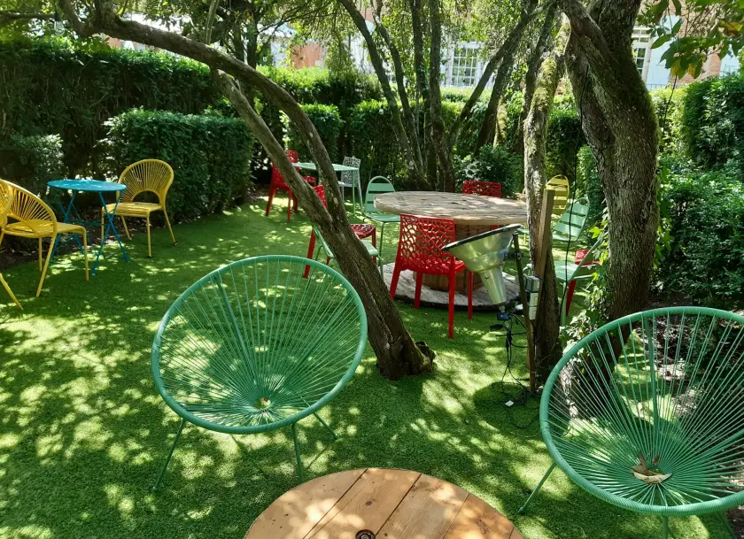 Notre parc d'un hectare permet, malgré la proximité de Toulouse, de se sentir dans un écrin de verdure. Pas de soucis de parking, le restaurant où tout est fait maison, est sur place. Une fois arrivés, plus besoin de bouger.