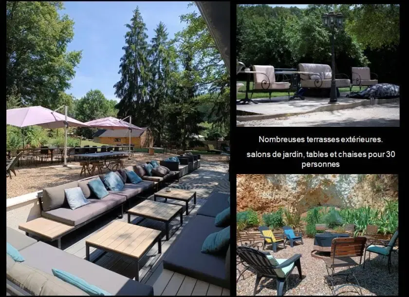 Grand jardin paysagé, nombreuses terrasses, BBqs, brasero, Piscine, sauna, jacuzzi, pétanque, babyfoot, fléchettes, badminton, ping-pong ...