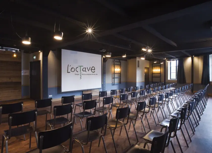 L’Octave est un ascenseur à émotion, à voyager dans Les Espaces ! Il a été imaginé pour recevoir ses clients sur trois niveaux et quatre lieux distincts, indépendants et privatisables. La Cave voûtée se trouve au sous-sol, la salle de restaurant au rez-de-chaussée et les deux salons privatifs équipés en son et vidéo au premier étage.