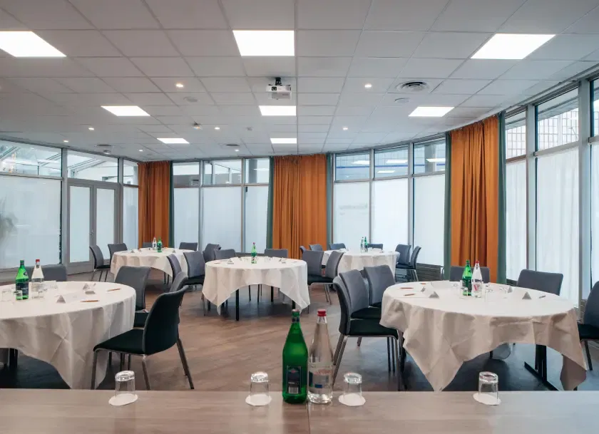 Au pied du RER A & E, en accès direct à la Défense et à moins de 30 min. de Disneyland Paris, vous pourrez rejoindre en moins de 20 min, les axes majeurs de Paris, tels que Gare de Lyon, Gare du Nord, Chatelet.... Nous disposons de 8 salles de séminaires à la lumière du jour, d'un bar, ainsi que d'un restaurant avec des plats faits maison, profitez aussi de notre patio pour les beaux jours !