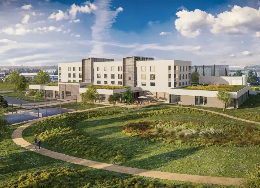 Ce futur établissement 4* sera situé dans un parc arboré de 10000m², tout en étant situé aux portes de Lyon et à proximité de différents points névralgiques (centre des Congrès Lyon Eurexpo, Groupama Stadium, LDLC Aréna, Aéroport Saint-Exupéry).