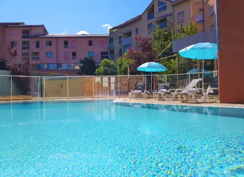 Toutes nos chambres sont équipées d’une TV écran plat. L’accès aux chambres se fait par ascenseurs au rez-de-chaussée.Pour vos réunions d’affaires, showroom, stages, trois salons de capacités différentes sont mis à votre disposition afin d’adapter au mieux vos séminaires.Notre piscine est ouverte de Juin à Septembre.Grâce à notre parking privé gratuit et notre garage fermé (avec supplément), vous pourrez stationner en toute tranquillité à l’hôtel.