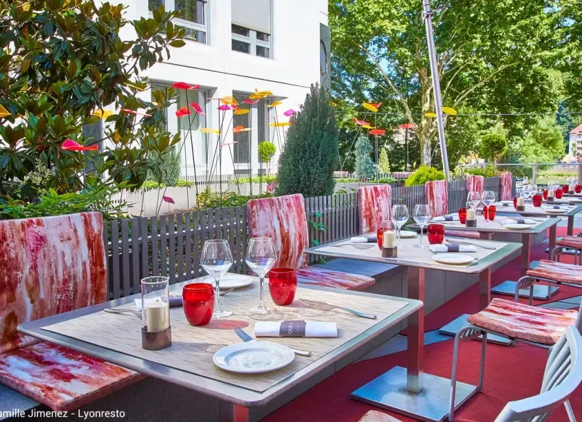 Déjeunez ou dînez dans l'élégante salle intérieure d'une capacité de 100 couverts, ou sur la terrasse extérieure ombragée avec vue sur la Saône, aux beaux jours.